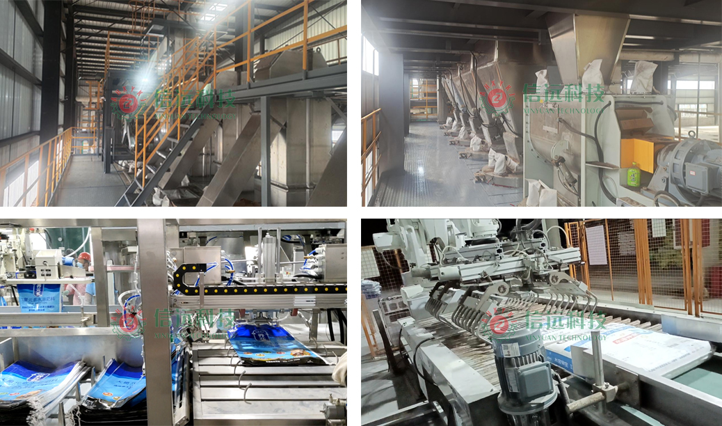 信遠(yuǎn)科技為廣大肥料行業(yè)客戶推薦的這套年產(chǎn)2-5萬(wàn)噸的固體粉劑水溶肥設(shè)備配置方案,適用于充填容量為5-50kg的編織袋、PP/PE袋,可以包裝大量元素水溶肥、中量元素水溶肥、微量元素水溶肥、含氨基酸水溶肥、含腐植酸水溶肥、含黃腐酸鉀水溶肥等不同配方的固體粉劑水溶肥產(chǎn)品。該套方案從前端的配料工段到后端的碼垛工段均采用了全自動(dòng)化的設(shè)備系統(tǒng),在批量化的流水線作業(yè)中,提高了生產(chǎn)效率,穩(wěn)定了產(chǎn)品質(zhì)量,降低了生產(chǎn)成本,縮短了生產(chǎn)周期,保證了生產(chǎn)的均衡性和產(chǎn)品的標(biāo)準(zhǔn)化。