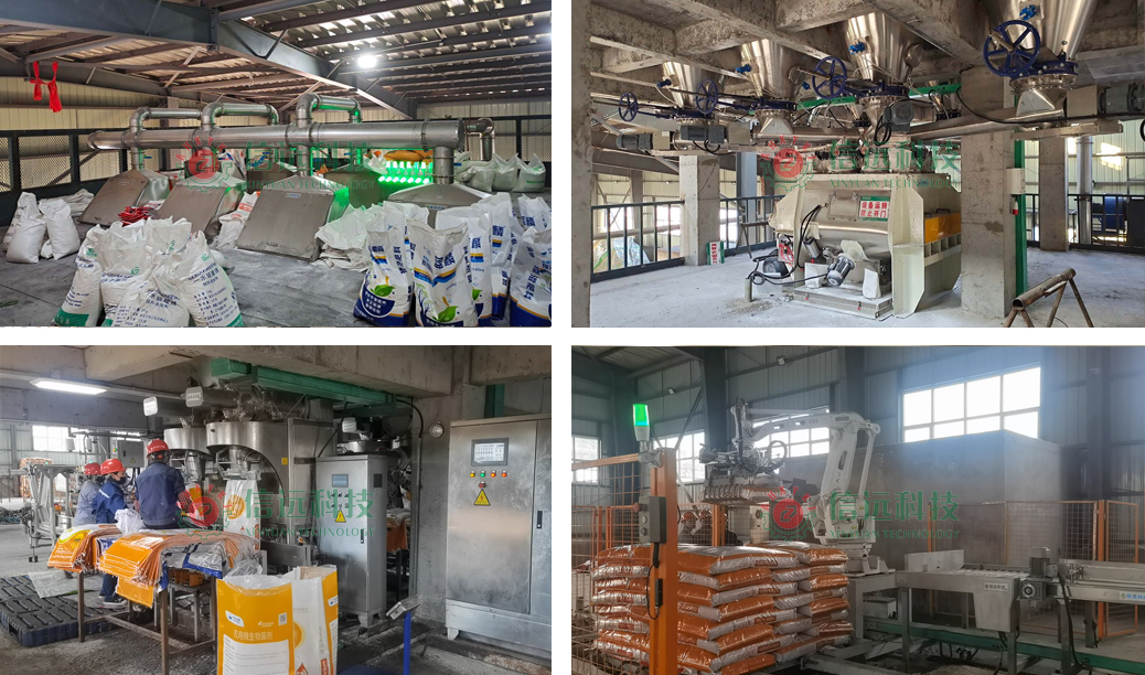 信遠(yuǎn)科技為廣大肥料行業(yè)客戶推薦的這套年產(chǎn)1-2萬噸的固體粉劑水溶肥設(shè)備配置方案,適用于充填容量為5-50kg的編織袋、PP/PE袋,可以包裝大量元素水溶肥、中量元素水溶肥、微量元素水溶肥、含氨基酸水溶肥、含腐植酸水溶肥、含黃腐酸鉀水溶肥等不同配方的固體粉劑水溶肥產(chǎn)品。該套方案的前端和后端均采用了全自動(dòng)化的設(shè)備系統(tǒng),把復(fù)雜繁重的作業(yè)工段交給設(shè)備來完成,減少了人工成本、降低了勞動(dòng)強(qiáng)度、提高了產(chǎn)品配混的標(biāo)準(zhǔn)化和理包碼垛搬運(yùn)的效率。