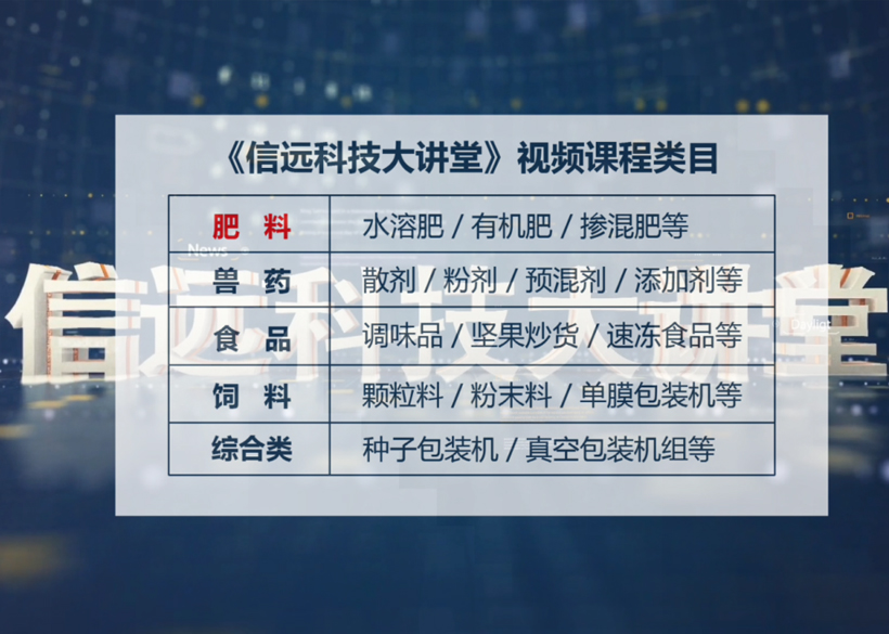 該視頻邀請(qǐng)信遠(yuǎn)科技各部門的資深工程師進(jìn)行講解,每周更新一期。課程暫推50期,內(nèi)容涵蓋了肥料、化工、獸藥、食品、飼料、種子等多個(gè)行業(yè)。每期課程將會(huì)通過(guò)信遠(yuǎn)科技企業(yè)微信公眾號(hào)、視頻號(hào)、抖音號(hào)發(fā)布播出,同時(shí)也會(huì)在百度、騰訊、頭條、愛(ài)奇藝、土豆等平臺(tái)同步上線播出,歡迎廣大網(wǎng)友和客戶隨時(shí)點(diǎn)擊進(jìn)入觀看。