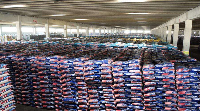 這套生產(chǎn)線設(shè)備是原料經(jīng)過人工投料后,配混設(shè)備會把不同配方的物料元素按照不同的配置比例進(jìn)行自動配料和自動混合。混合均勻后的原料輸送至包裝機(jī)上方的儲料倉斗內(nèi),倉斗內(nèi)的物料通過快慢兩級螺旋給料的方式充填進(jìn)包裝袋中,包裝過程為全自動化作業(yè),無需人工參與,即可完成自動上袋、夾袋和充填物料,待稱重傳感器檢測到袋內(nèi)物料重量達(dá)到設(shè)定數(shù)值時,自動停止充填、并自動松袋落袋,落在輸送帶上的包裝袋將會自動運(yùn)送至自動折邊縫包機(jī)前進(jìn)行縫包成品。成品袋在輸送過程中,自動完成倒包、振實(shí)、壓平等理包整形后,由機(jī)器人完成碼垛入庫,日產(chǎn)量可以達(dá)到100噸左右。