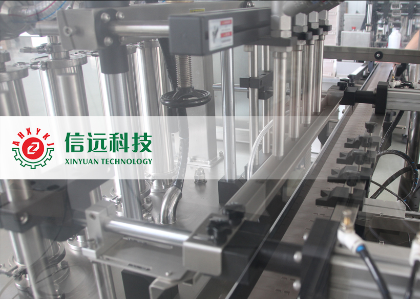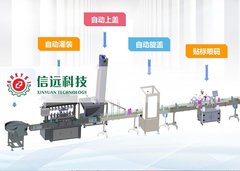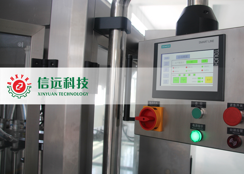 信遠(yuǎn)科技瓶裝液體全自動灌裝機(jī)組,由理瓶機(jī)、灌裝機(jī)、上蓋/旋蓋機(jī)和貼標(biāo)噴碼機(jī)組成??梢怨嘌b單瓶容量在50-1000ml范圍之間的液體物料,生產(chǎn)企業(yè)可以根據(jù)自己的需要,選擇不同型號的灌裝機(jī)和配套輔機(jī)。這套機(jī)組設(shè)備采用不銹鋼材質(zhì)設(shè)計制造,適用于食品、化工、醫(yī)藥等行業(yè)不帶氣體的流體、半流體物料的計量灌裝,具有自動完成理瓶、進(jìn)瓶、定位、灌裝、出瓶、上蓋、旋蓋、鋁箔封口、貼標(biāo)、噴碼等一系列功能。