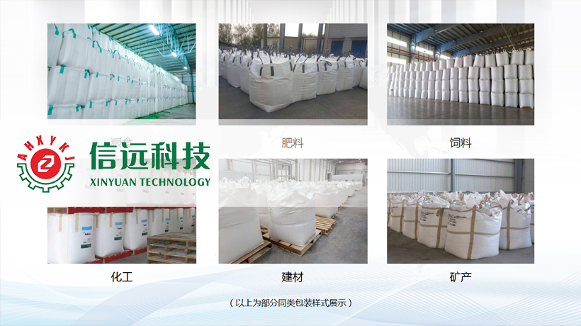 信遠(yuǎn)科技全自動(dòng)噸袋包裝機(jī)組,廣泛應(yīng)用于電力、煤炭、石化、化工、化肥、糧食、飼料、冶金、環(huán)保、建材、塑料、橡膠、染料、新材料等行業(yè)大型軟袋顆粒物料或粉狀物料的自動(dòng)定量包裝。
