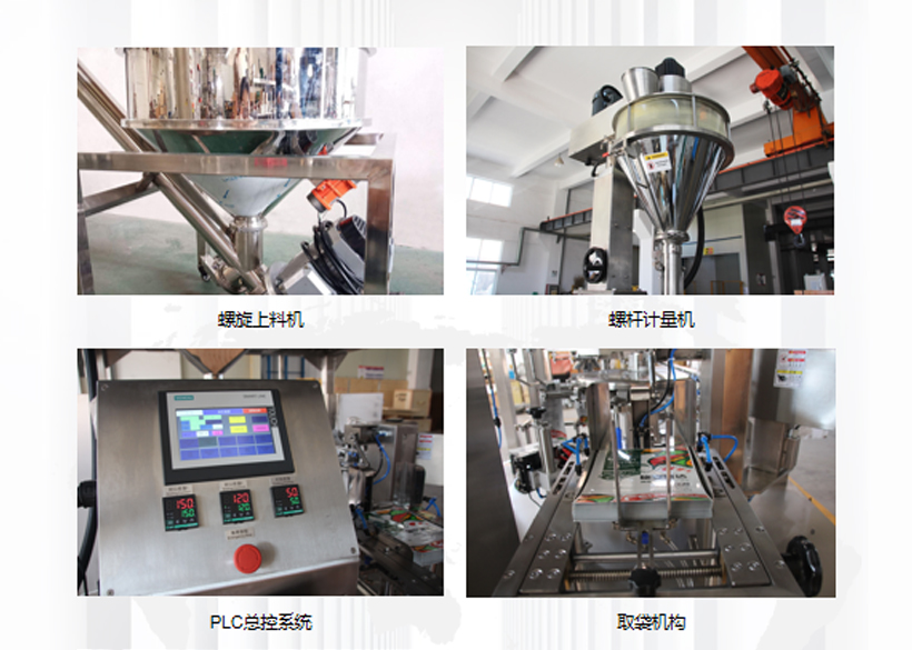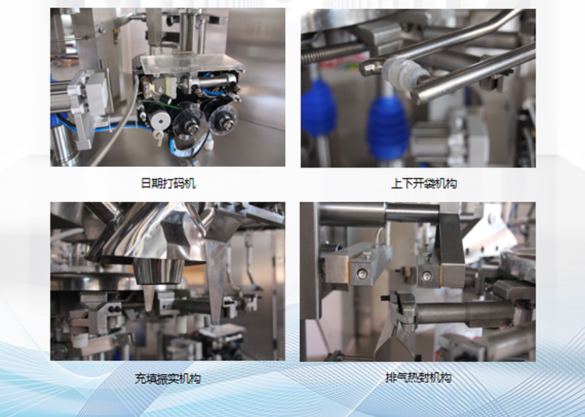 包裝機(jī)根據(jù)程序設(shè)計(jì),自動(dòng)完成取袋、立式上袋、打碼、開(kāi)袋、充填、振實(shí)、熱封以及整形輸出等各工位的有序運(yùn)行。