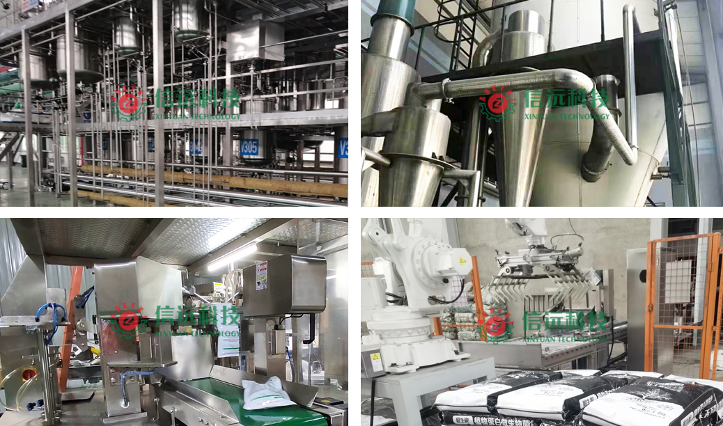 信遠(yuǎn)科技粉狀微生物菌劑成套生產(chǎn)設(shè)備,主要分為菌種基、發(fā)酵基、成品菌液、固液混合、噴霧干燥和包裝碼垛六大裝置工段。首先,蒸汽系統(tǒng)對(duì)罐體、管道等設(shè)備進(jìn)行滅菌處理,然后把提取的菌種放入菌種罐進(jìn)行發(fā)酵擴(kuò)培,待菌種活化生長(zhǎng)旺盛后,進(jìn)入發(fā)酵罐進(jìn)行配料發(fā)酵擴(kuò)繁。當(dāng)發(fā)酵菌液達(dá)到工藝要求指標(biāo)后,需要與吸附載體進(jìn)行攪拌混合均勻,然后輸送至噴霧干燥系統(tǒng)形成粉狀菌劑。成品粉狀菌劑通過包裝碼垛系統(tǒng),可以實(shí)現(xiàn)小袋到重袋的全自動(dòng)包裝、封口、噴碼、裝箱和機(jī)器人碼垛作業(yè),完成菌劑產(chǎn)品下線。
