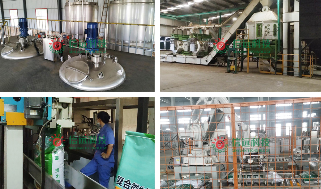 信遠(yuǎn)科技顆粒狀復(fù)合微生物菌肥成套生產(chǎn)設(shè)備,主要由原料預(yù)處理、攪拌混合、造粒干燥、冷卻包膜、包裝碼垛五大工段裝置組成。首先,微生物菌劑、有機(jī)原料、無機(jī)原料這三類原料,需要按照技術(shù)標(biāo)準(zhǔn)進(jìn)行生產(chǎn),達(dá)到配料要求,然后三類原料按照質(zhì)量配比進(jìn)行混合攪拌,拌勻后的混合料經(jīng)過造粒干燥系統(tǒng)形成顆粒狀,再經(jīng)過冷卻篩分包膜系統(tǒng)進(jìn)行固型,形成標(biāo)準(zhǔn)顆粒產(chǎn)品。通過包裝碼垛系統(tǒng),可以實(shí)現(xiàn)小袋到重袋不同規(guī)格產(chǎn)品的自動計(jì)量、包裝、封口、噴碼、裝箱和碼垛作業(yè),完成復(fù)合微生物菌肥產(chǎn)品的規(guī)?;?biāo)準(zhǔn)化生產(chǎn)。
