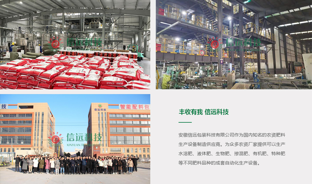 安徽信遠包裝科技有限公司作為國內(nèi)知名的農(nóng)資肥料生產(chǎn)設(shè)備制造供應(yīng)商,長期服務(wù)于中化、中農(nóng)、云天化、金正大、六國、云圖、新洋豐、史丹利、施可豐、鄂中、開門子、興發(fā)、華強、開磷、三寧、祥云、輝隆等國內(nèi)肥料龍頭企業(yè),為眾多農(nóng)資廠家提供可以生產(chǎn)水溶肥、液體肥、生物肥、摻混肥、有機肥、特種肥等不同肥料品種的成套自動化生產(chǎn)設(shè)備,是中國農(nóng)資廠家“穩(wěn)生產(chǎn)、強供應(yīng)”背后的堅定合作伙伴。信遠科技將一如既往地和中國農(nóng)資生產(chǎn)企業(yè)一起,共同為中國農(nóng)業(yè)大豐收保駕護航,為中國農(nóng)業(yè)現(xiàn)代化添磚加瓦。