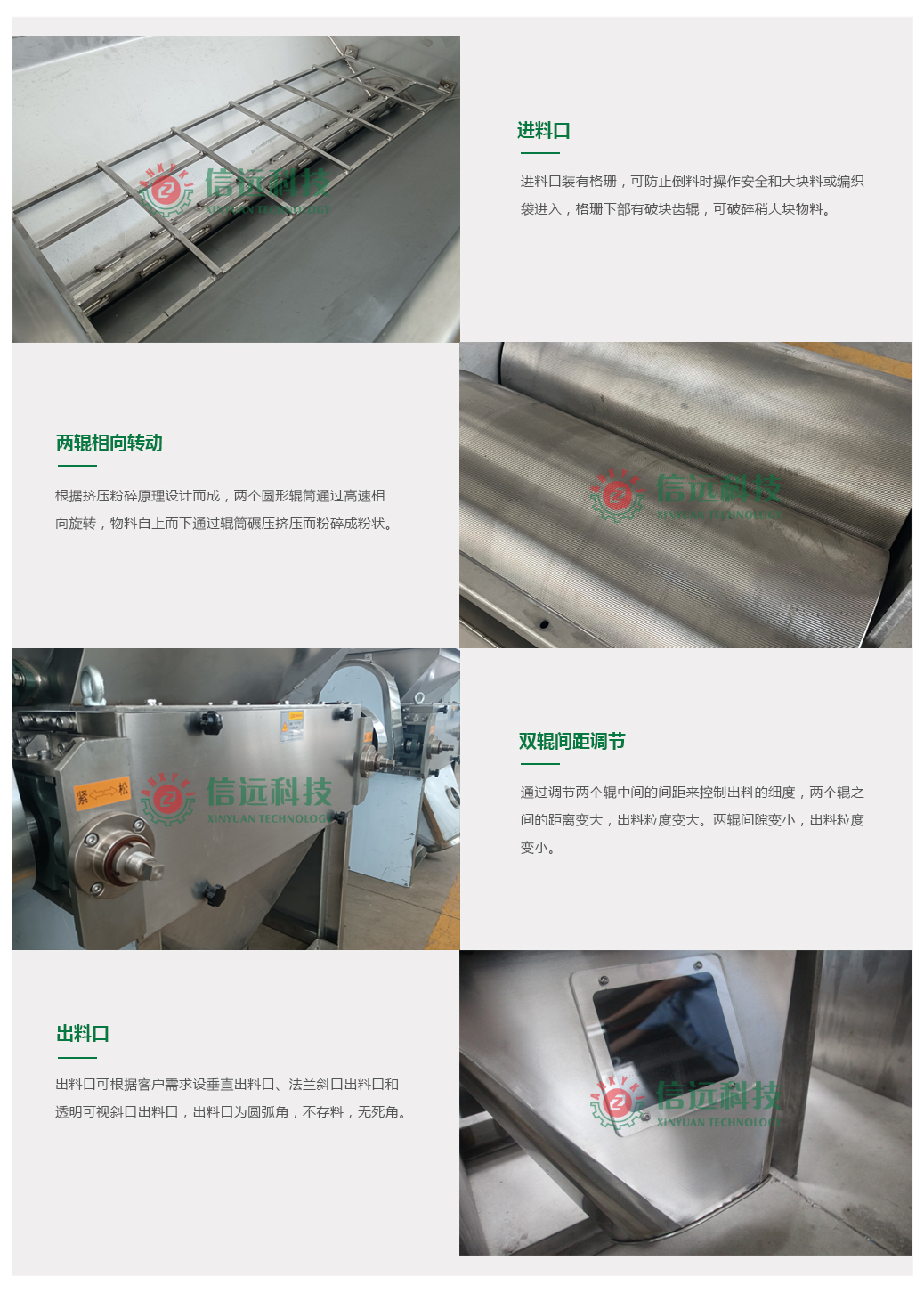 粉碎速度快、粉碎量大、粉碎效果好,不粘輥、操作簡(jiǎn)單