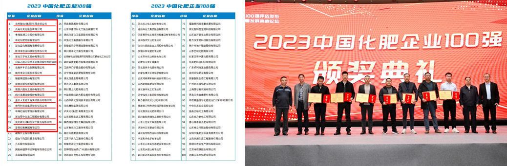 12月14日,由中國化工情報(bào)信息協(xié)會(huì)、中國化工信息中心、泰安市人民政府主辦,中國化肥信息中心、泰安市商務(wù)局(市投資促進(jìn)局)承辦的“2023(第十六屆)中國化肥100強(qiáng)評選發(fā)布暨中國化肥產(chǎn)業(yè)高質(zhì)量發(fā)展高峰論壇”在山東省泰安市盛大召開!本次會(huì)議以“加快培育世界一流企業(yè) 助力構(gòu)建高質(zhì)量發(fā)展”為主題,旨在發(fā)揮一流企業(yè)榜樣示范作用、聚焦于行業(yè)熱點(diǎn)、痛點(diǎn),共同探討、推動(dòng)我國化肥產(chǎn)業(yè)高質(zhì)量發(fā)展。會(huì)上,2023中國化肥百強(qiáng)榜單正式發(fā)布!其中,貴州磷化(集團(tuán))有限責(zé)任公司位列第一,云南云天化股份有限公司、青海鹽湖工業(yè)股份有限公司分別位列二三位。通過榜單評選,引領(lǐng)行業(yè)理性認(rèn)識(shí)新發(fā)展格局下面臨的機(jī)遇和挑戰(zhàn),引導(dǎo)企業(yè)主動(dòng)適應(yīng)變革,實(shí)現(xiàn)轉(zhuǎn)型升級;加快培育具有行業(yè)引領(lǐng)力與全球競爭力的世界一流肥料企業(yè)集群。