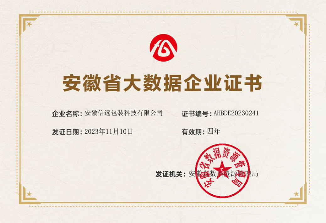 11月3日,安徽省數(shù)據(jù)資源管理局網(wǎng)站發(fā)布《關(guān)于2023年度安徽省大數(shù)據(jù)企業(yè)名單的公示》。安徽信遠(yuǎn)包裝科技有限公司憑借在自動(dòng)化設(shè)備領(lǐng)域長(zhǎng)期的數(shù)據(jù)積累和數(shù)據(jù)應(yīng)用,以及借助大數(shù)據(jù)信息助推兩化融合發(fā)展的優(yōu)秀成績(jī),成功榮獲“安徽省大數(shù)據(jù)企業(yè)”稱號(hào)。該稱號(hào)是信遠(yuǎn)科技繼榮獲安徽省新產(chǎn)品、安徽省著名商標(biāo)、安徽省專精特新企業(yè)等多項(xiàng)認(rèn)定后,又一項(xiàng)省級(jí)榮譽(yù)認(rèn)定。