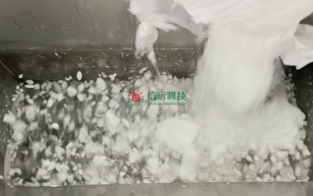 今天,我們先講一講預(yù)處理設(shè)備中的破碎機(jī)。大家都知道,水溶肥的各種配方原料有著不同的物料特性,比如經(jīng)過堆放疊壓,溫度濕度變化,有的原料容易形成假性結(jié)塊或硬性結(jié)塊。按照工藝要求,結(jié)塊物料是不符合生產(chǎn)要求的,必須進(jìn)行破碎打散后才能使用。信遠(yuǎn)科技為此專門開發(fā)了針對假性結(jié)塊物料和硬性結(jié)塊物料的兩款專用破碎機(jī)設(shè)備。