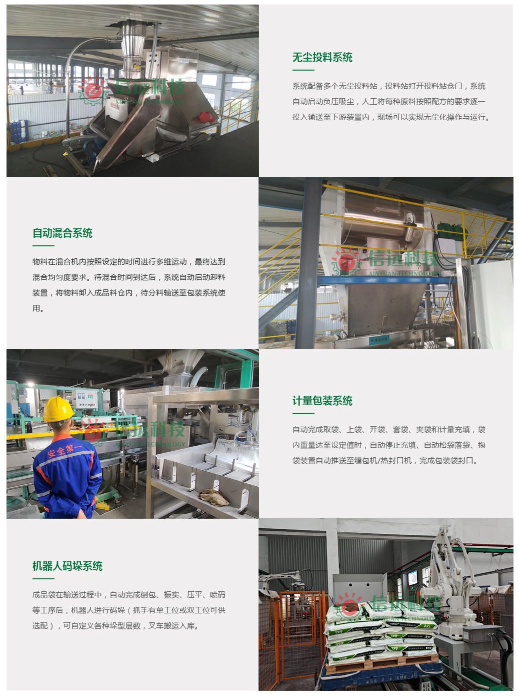 集混合、包裝、機(jī)器人碼垛于一體的自動化生產(chǎn)線設(shè)備