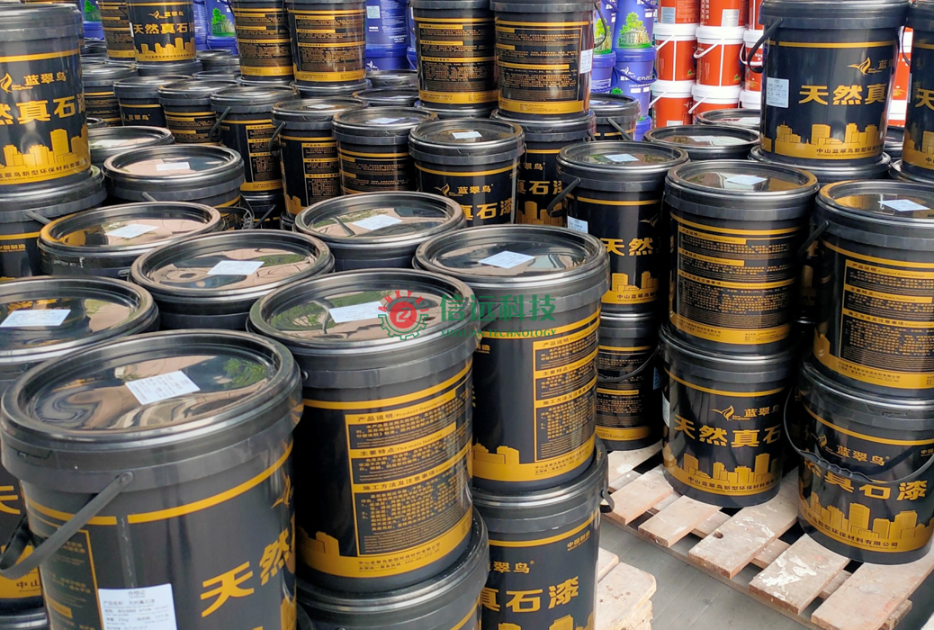 安徽信遠包裝科技有限公司全自動涂料生產(chǎn)線,采用立體空間布置,由上往下式流程,全自動化操作,自動進料、自動稱重計量、高速分散、循環(huán)研磨、真空消泡、自動過濾、自動灌裝碼垛等整套工藝流水工序完成,提高了生產(chǎn)效率,減少了勞動強度。該生產(chǎn)線采用全封閉操作,實現(xiàn)了人機分離進行分散,研磨,調(diào)漆,不會造成環(huán)境污染,同時避免了化學物質(zhì)對人體的侵害。該套設(shè)備可以生產(chǎn)內(nèi)外墻乳膠漆、真石漆、質(zhì)感漆、多彩漆、防水材料等多種涂料產(chǎn)品。