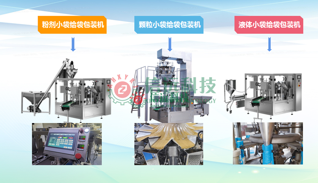 信遠(yuǎn)科技全自動(dòng)給袋包裝機(jī)組,整機(jī)結(jié)構(gòu)同樣采用不銹鋼材質(zhì)制造。該機(jī)具有自動(dòng)完成送料、計(jì)量、給袋、充填、封口、打印、計(jì)數(shù)、輸送等一系列功能,可以生產(chǎn)粉料、顆粒料、液體料。旋轉(zhuǎn)式的多工位給袋包裝機(jī)采用高精度伺服系統(tǒng)帶動(dòng)主軸運(yùn)轉(zhuǎn),袋寬大小可以一鍵調(diào)節(jié),多組機(jī)夾跟隨袋寬同步調(diào)節(jié),包裝過(guò)程通過(guò)變頻調(diào)速裝置,輕松實(shí)現(xiàn)穩(wěn)定運(yùn)行。